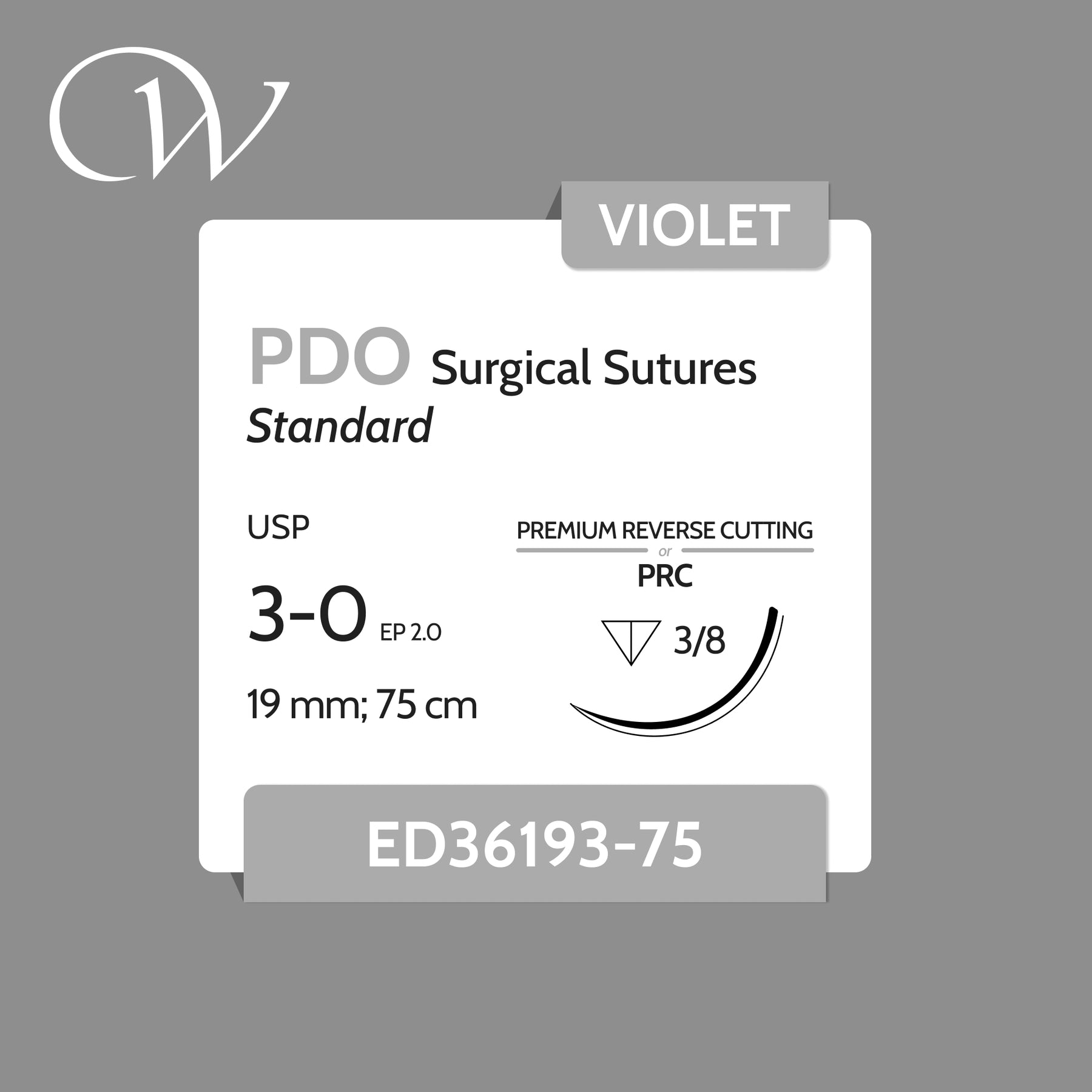Premium PDO Sutures 3-0, 3/8 PRC | Violet | 19mm; 75cm (30") | Box of 12