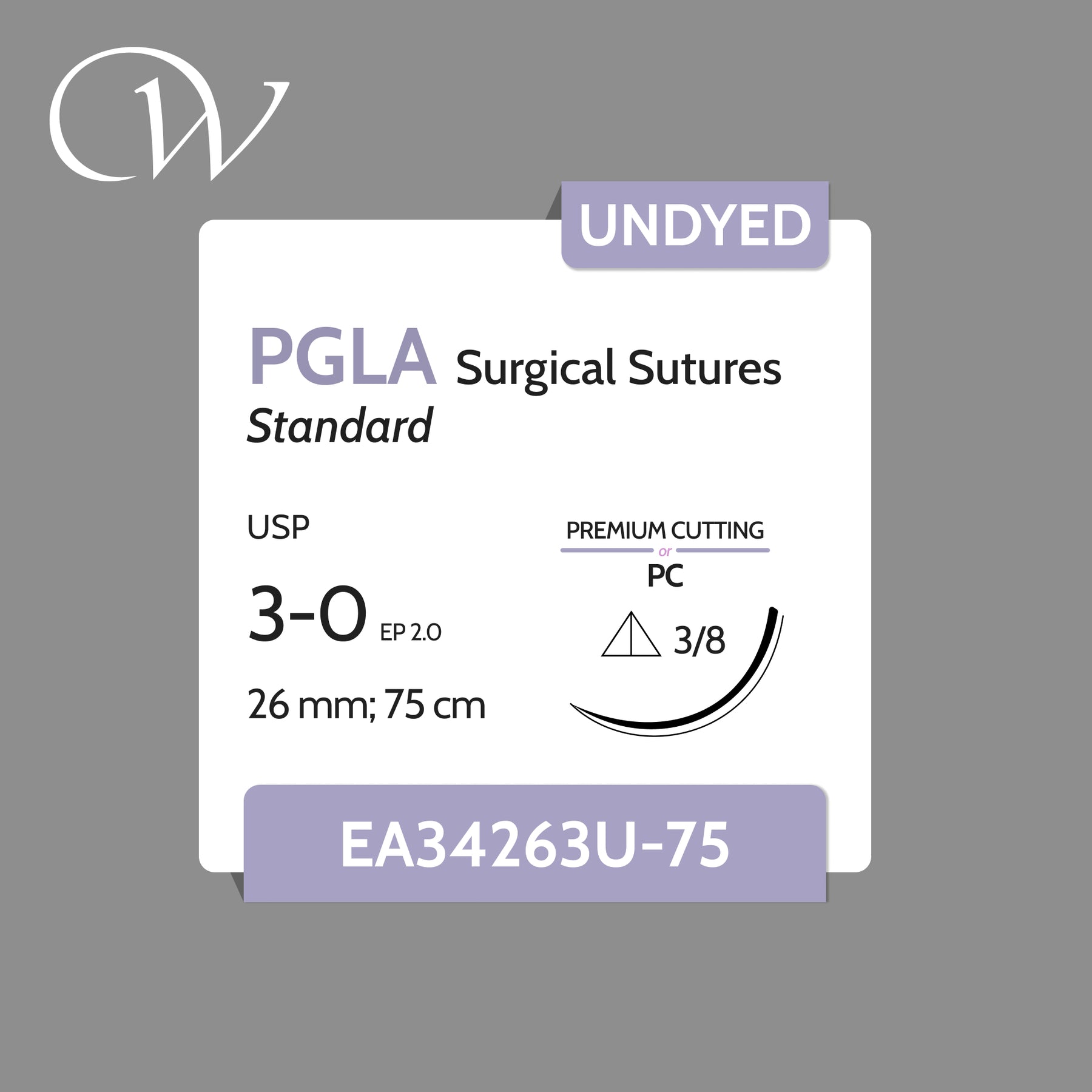 Premium PGLA Sutures 3-0, 3/8 Premium Cutting | Undyed | 26mm; 75cm (30") | Box of 12